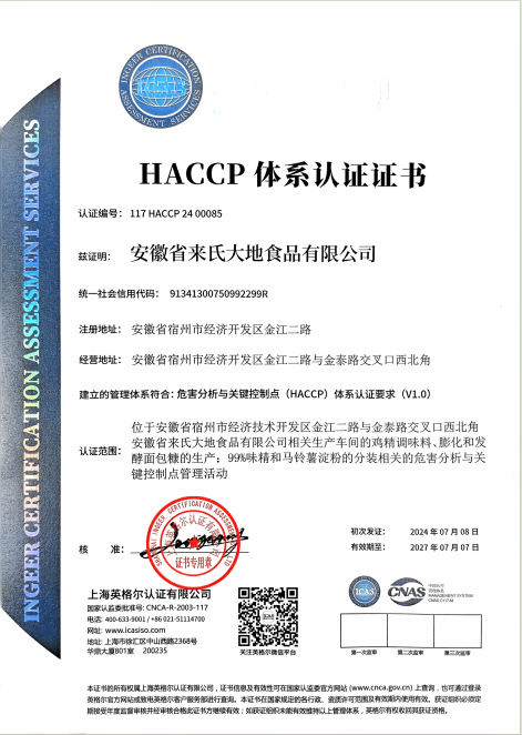 HACCP认证证书